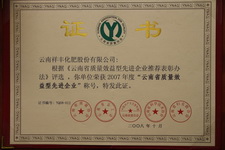 云南省質(zhì)量效益先進企業(yè)特別獎