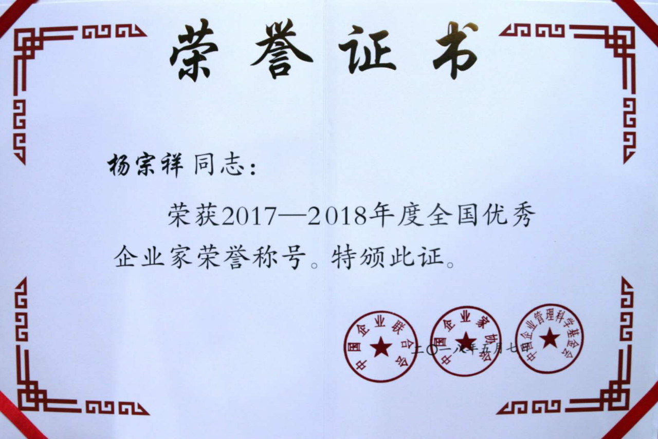 全國優(yōu)秀企業(yè)家榮譽(yù)稱號