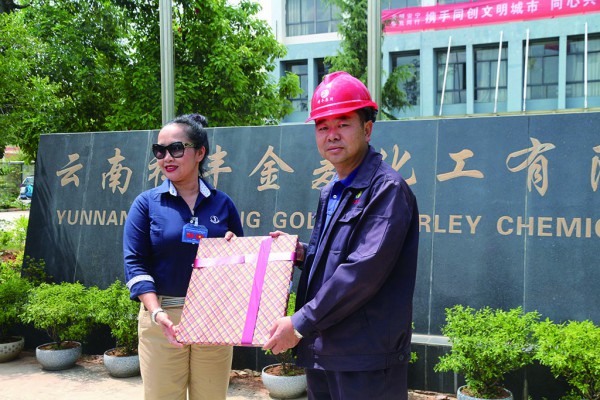 2015年4月17日云南祥豐化肥股份有限公司黨支部升級(jí)為黨總支,選舉產(chǎn)生第一屆黨總支委員顧建新、蘇婷、魯留定,顧建新當(dāng)選第一屆黨總支書(shū)記。蘇婷任祥豐集團(tuán)機(jī)關(guān)黨支部書(shū)記,李興旺任祥豐生產(chǎn)廠黨支部書(shū)記,楊加富任弘祥公司黨支部書(shū)記,陳明香任金麥公司黨支部書(shū)記;2015年4月21日來(lái)自越南及印度尼西亞的客戶對(duì)我公司進(jìn)行實(shí)地考察;