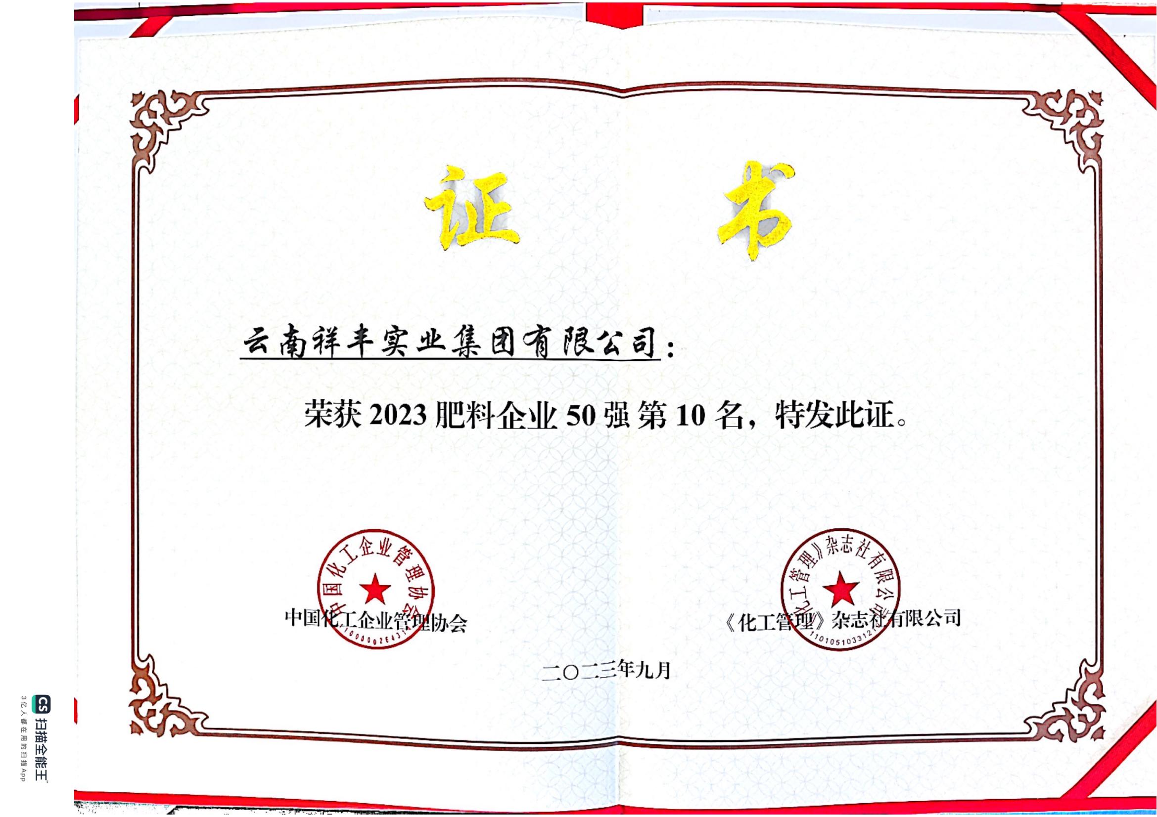 安寧復(fù)合肥原料廠進(jìn)入"云南省百?gòu)?qiáng)私營(yíng)企業(yè)"行列;