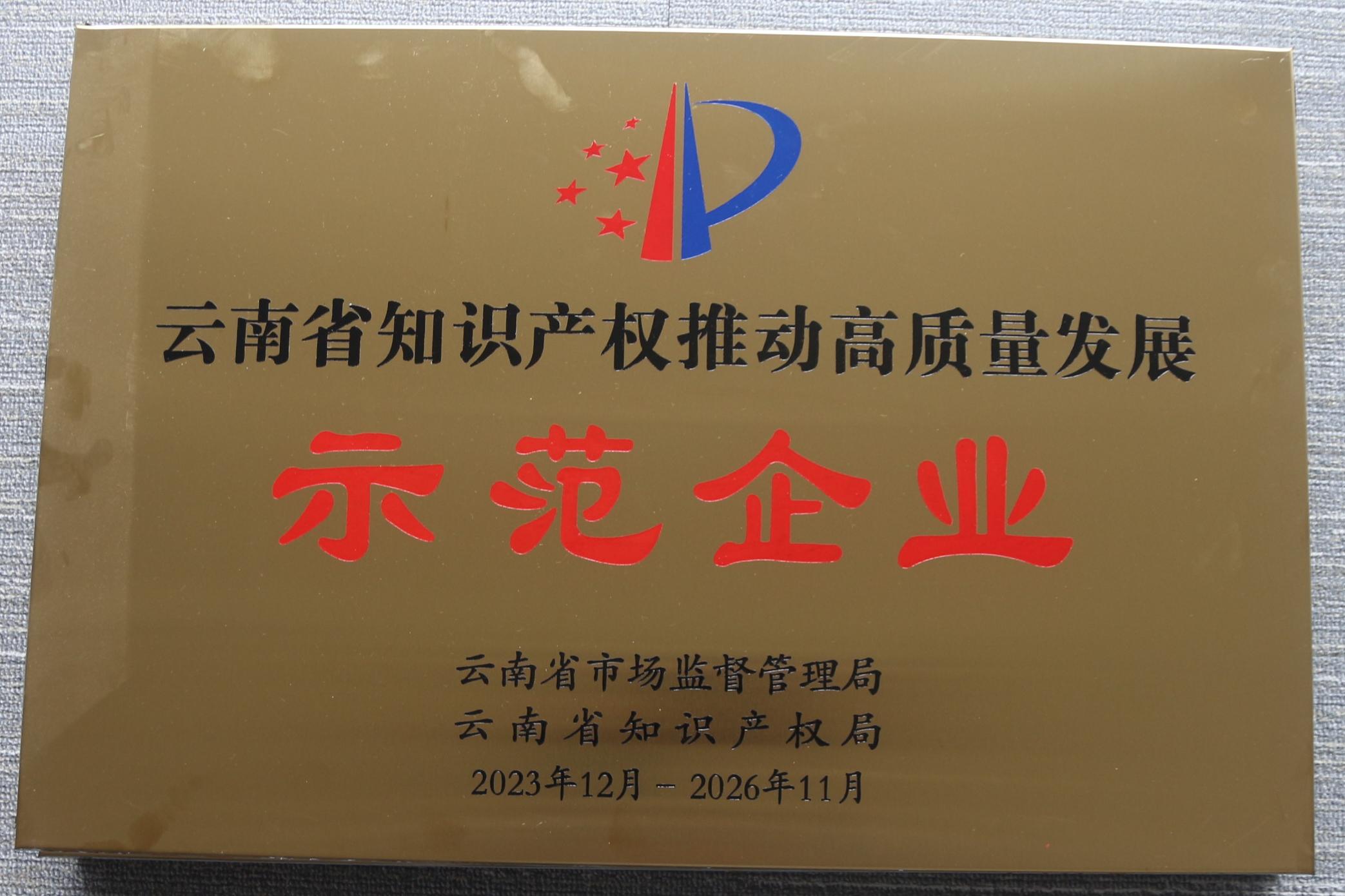 云南省知識產(chǎn)權(quán)推動高質(zhì)量發(fā)展示范企業(yè)