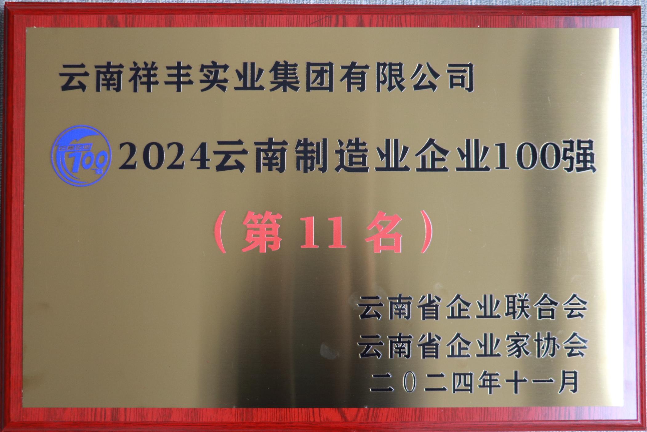 2024云南制造業(yè)企業(yè)100強(qiáng)第11名