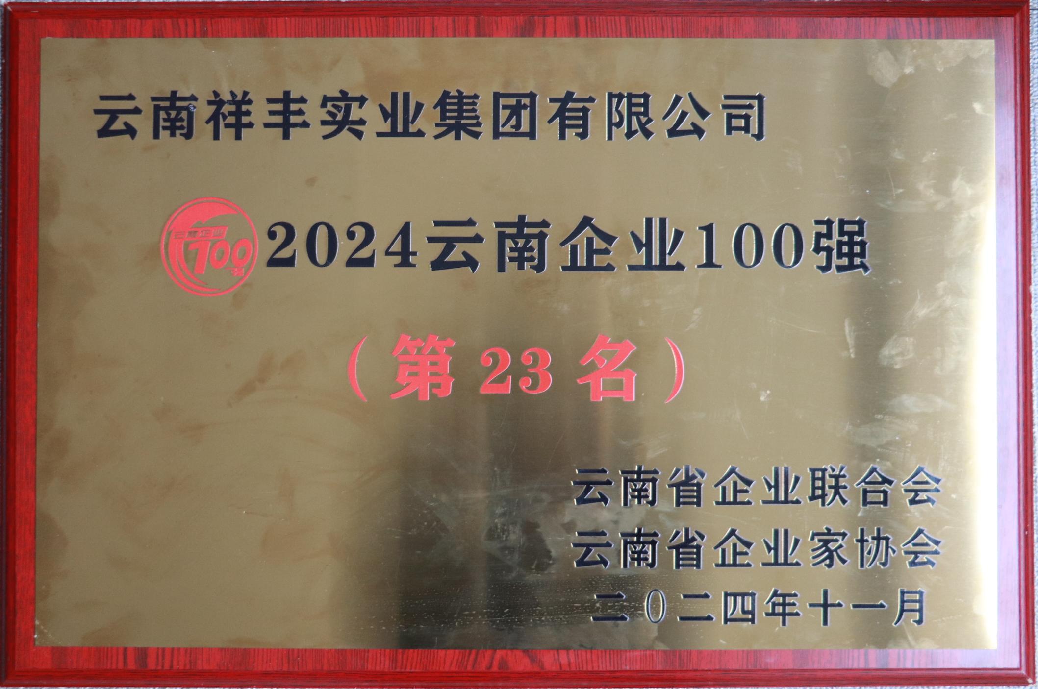 2024云南企業(yè)100強(qiáng)第23名